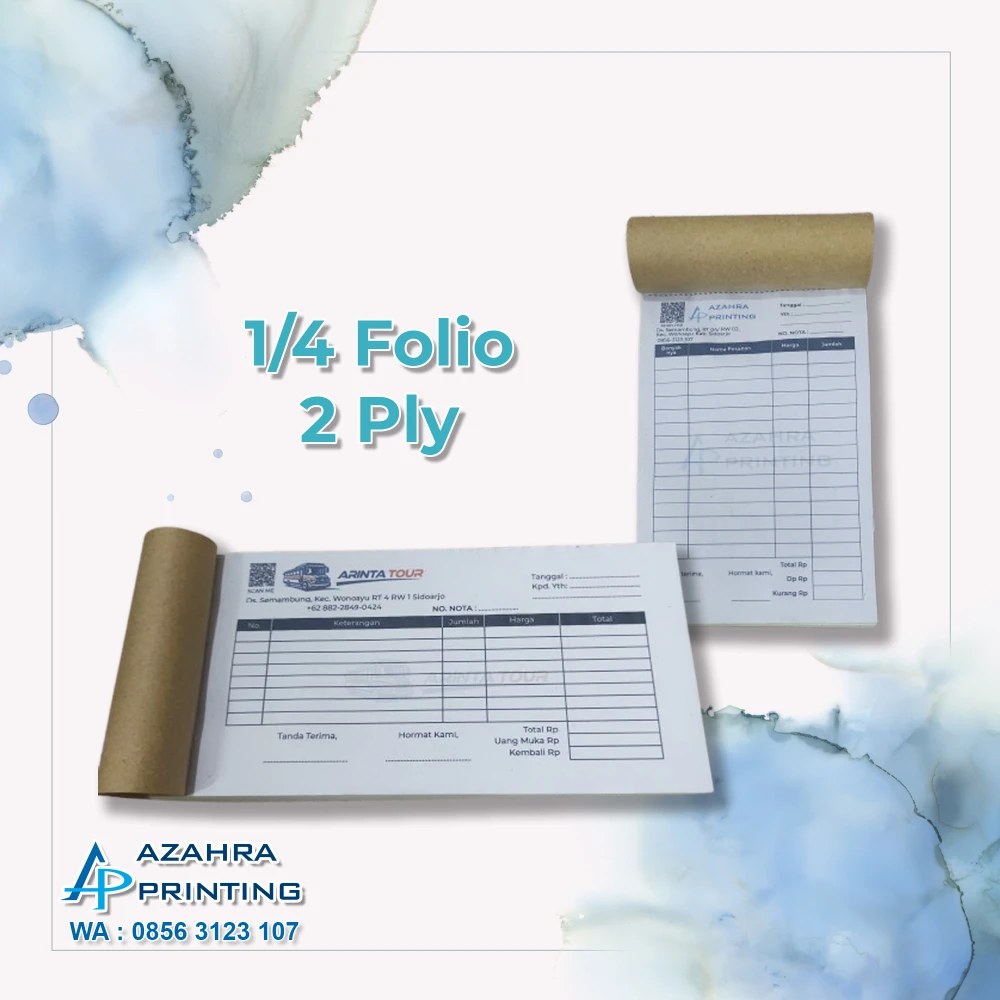 Nota Nota Costum 2 Ply & 1Ply ukuran 1/4 folio