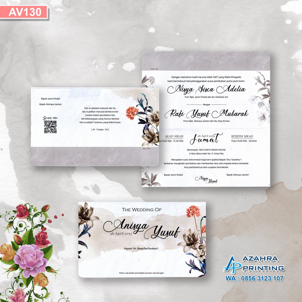 Keuntungan jika order di azahra_printing : ✨Pilihan undangannya banyak✨ Desain kekinian dan modis✨ Produknya berkualitas ✨ Packingnya aman✨ Pengirimannya cepat✨ Harga ramah dikantong ✨ Free revisi berkali-kali sampai fix✨ Free Foto (minimal order 300pcs) ✨ Free undangan website (minimal order 800pcs)✨ Free buku tamu (minimal order 300pcs)✨ Free cetak stiker label nama (minimal order 400pcs)✨ Undangan sudah terlipat rapi✨ Free denah lokasi dan barcode✨ Free Undangan Walimah 1 lembar HVS✨ Free plastik undangan ✨ Gratis Ongkir minimal order 800pcs se jatim