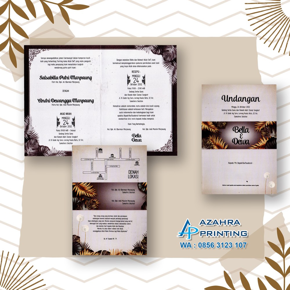 Keuntungan jika order di azahra_printing : ✨Pilihan undangannya banyak✨ Desain kekinian dan modis✨ Produknya berkualitas ✨ Packingnya aman✨ Pengirimannya cepat✨ Harga ramah dikantong ✨ Free revisi berkali-kali sampai fix✨ Free Foto (minimal order 300pcs) ✨ Free undangan website (minimal order 800pcs)✨ Free buku tamu (minimal order 300pcs)✨ Free cetak stiker label nama (minimal order 400pcs)✨ Undangan sudah terlipat rapi✨ Free denah lokasi dan barcode✨ Free Undangan Walimah 1 lembar HVS✨ Free plastik undangan ✨ Gratis Ongkir minimal order 800pcs se jatim