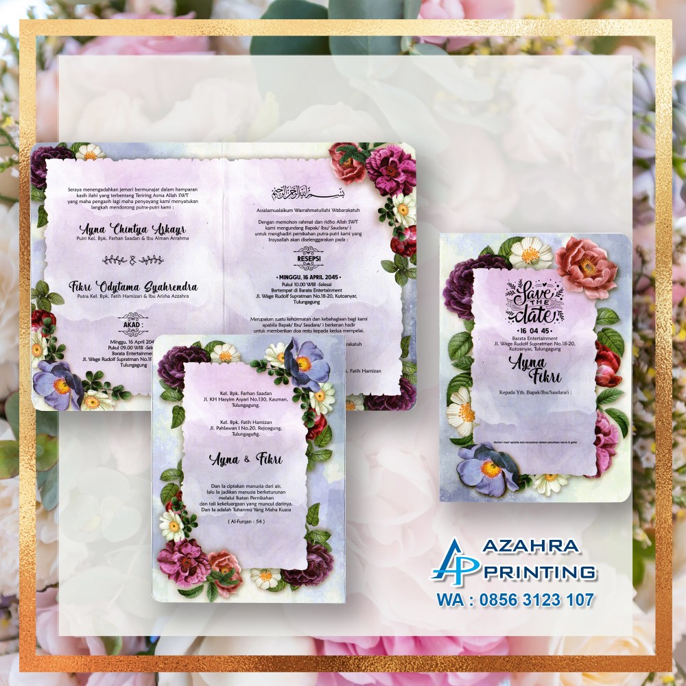 Keuntungan jika order di azahra_printing : ✨Pilihan undangannya banyak✨ Desain kekinian dan modis✨ Produknya berkualitas ✨ Packingnya aman✨ Pengirimannya cepat✨ Harga ramah dikantong ✨ Free revisi berkali-kali sampai fix✨ Free Foto (minimal order 300pcs) ✨ Free undangan website (minimal order 800pcs)✨ Free buku tamu (minimal order 300pcs)✨ Free cetak stiker label nama (minimal order 400pcs)✨ Undangan sudah terlipat rapi✨ Free denah lokasi dan barcode✨ Free Undangan Walimah 1 lembar HVS✨ Free plastik undangan ✨ Gratis Ongkir minimal order 800pcs se jatim