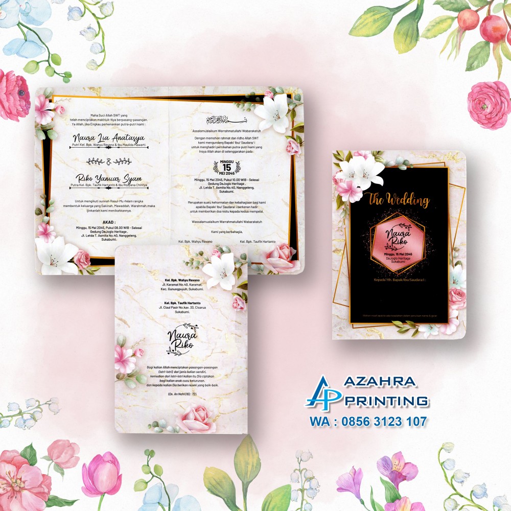 Keuntungan jika order di azahra_printing : ✨Pilihan undangannya banyak✨ Desain kekinian dan modis✨ Produknya berkualitas ✨ Packingnya aman✨ Pengirimannya cepat✨ Harga ramah dikantong ✨ Free revisi berkali-kali sampai fix✨ Free Foto (minimal order 300pcs) ✨ Free undangan website (minimal order 800pcs)✨ Free buku tamu (minimal order 300pcs)✨ Free cetak stiker label nama (minimal order 400pcs)✨ Undangan sudah terlipat rapi✨ Free denah lokasi dan barcode✨ Free Undangan Walimah 1 lembar HVS✨ Free plastik undangan ✨ Gratis Ongkir minimal order 800pcs se jatim