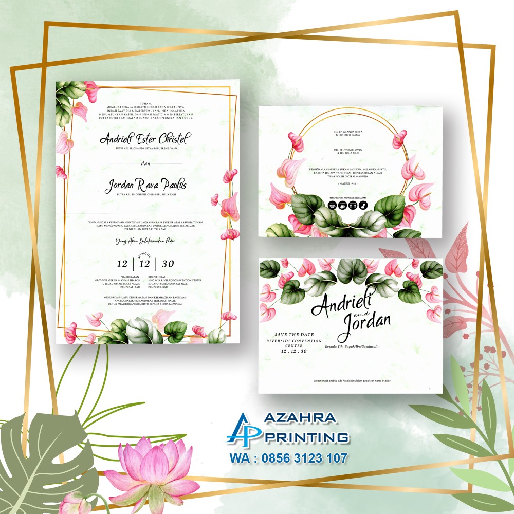 Keuntungan jika order di azahra_printing : ✨Pilihan undangannya banyak✨ Desain kekinian dan modis✨ Produknya berkualitas ✨ Packingnya aman✨ Pengirimannya cepat✨ Harga ramah dikantong ✨ Free revisi berkali-kali sampai fix✨ Free Foto (minimal order 300pcs) ✨ Free undangan website (minimal order 800pcs)✨ Free buku tamu (minimal order 300pcs)✨ Free cetak stiker label nama (minimal order 400pcs)✨ Undangan sudah terlipat rapi✨ Free denah lokasi dan barcode✨ Free Undangan Walimah 1 lembar HVS✨ Free plastik undangan ✨ Gratis Ongkir minimal order 800pcs se jatim