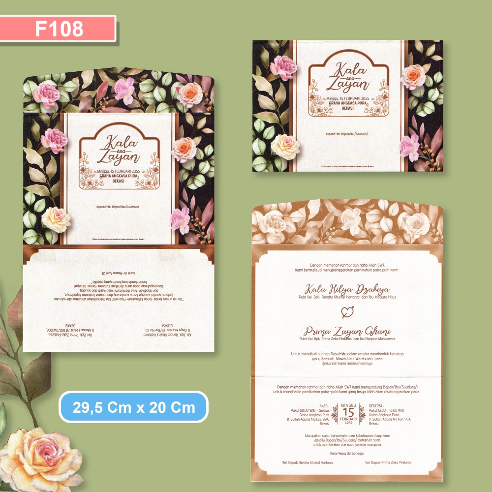 Hitam bungaUkuran Undangan:Terbuka : 20 x 29.5 cmTerlipat : 13.8 x 20 cm