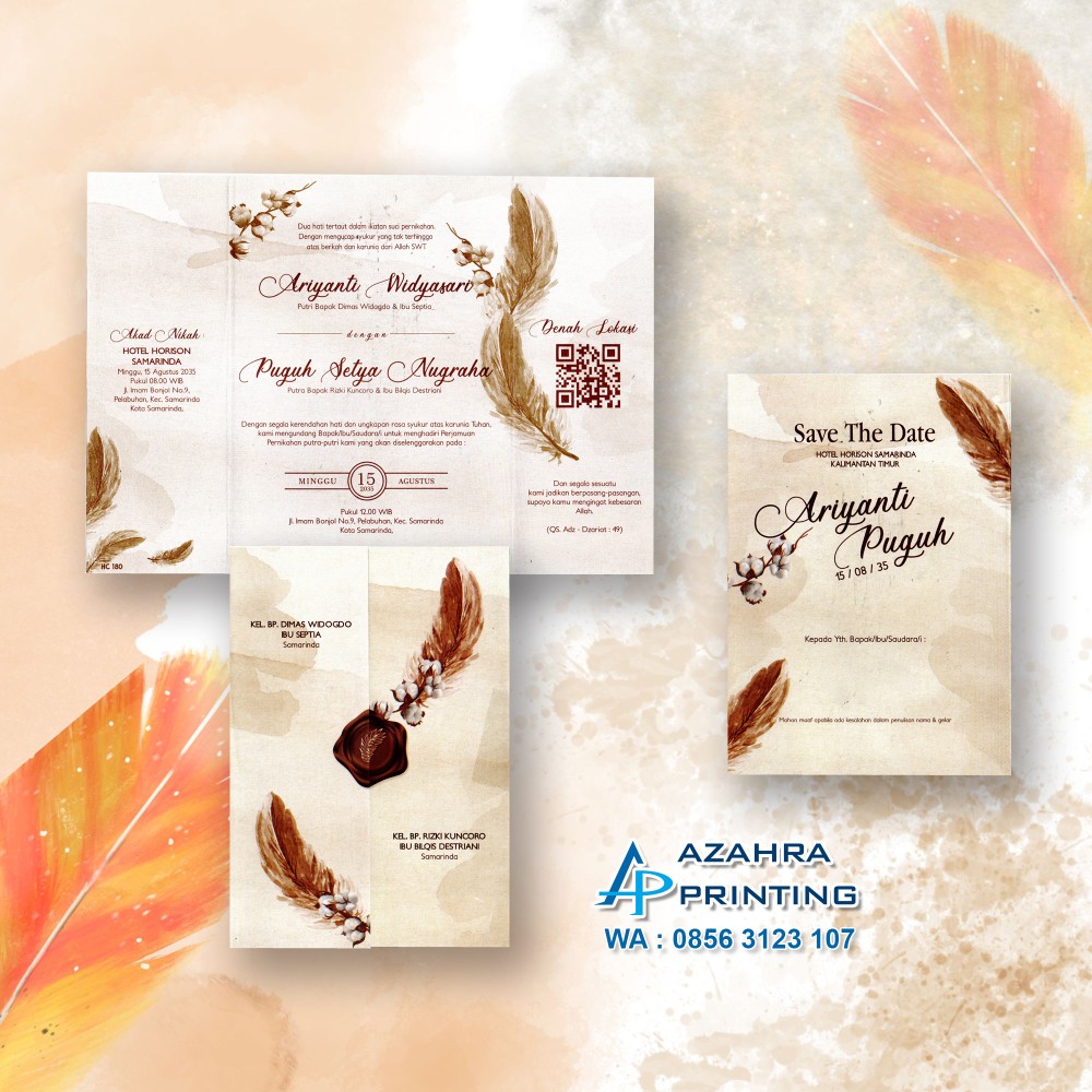 Keuntungan jika order di azahra_printing : ✨Pilihan undangannya banyak✨ Desain kekinian dan modis✨ Produknya berkualitas ✨ Packingnya aman✨ Pengirimannya cepat✨ Harga ramah dikantong ✨ Free revisi berkali-kali sampai fix✨ Free Foto (minimal order 300pcs) ✨ Free undangan website (minimal order 800pcs)✨ Free buku tamu (minimal order 300pcs)✨ Free cetak stiker label nama (minimal order 400pcs)✨ Undangan sudah terlipat rapi✨ Free denah lokasi dan barcode✨ Free Undangan Walimah 1 lembar HVS✨ Free plastik undangan ✨ Gratis Ongkir minimal order 800pcs se jatim