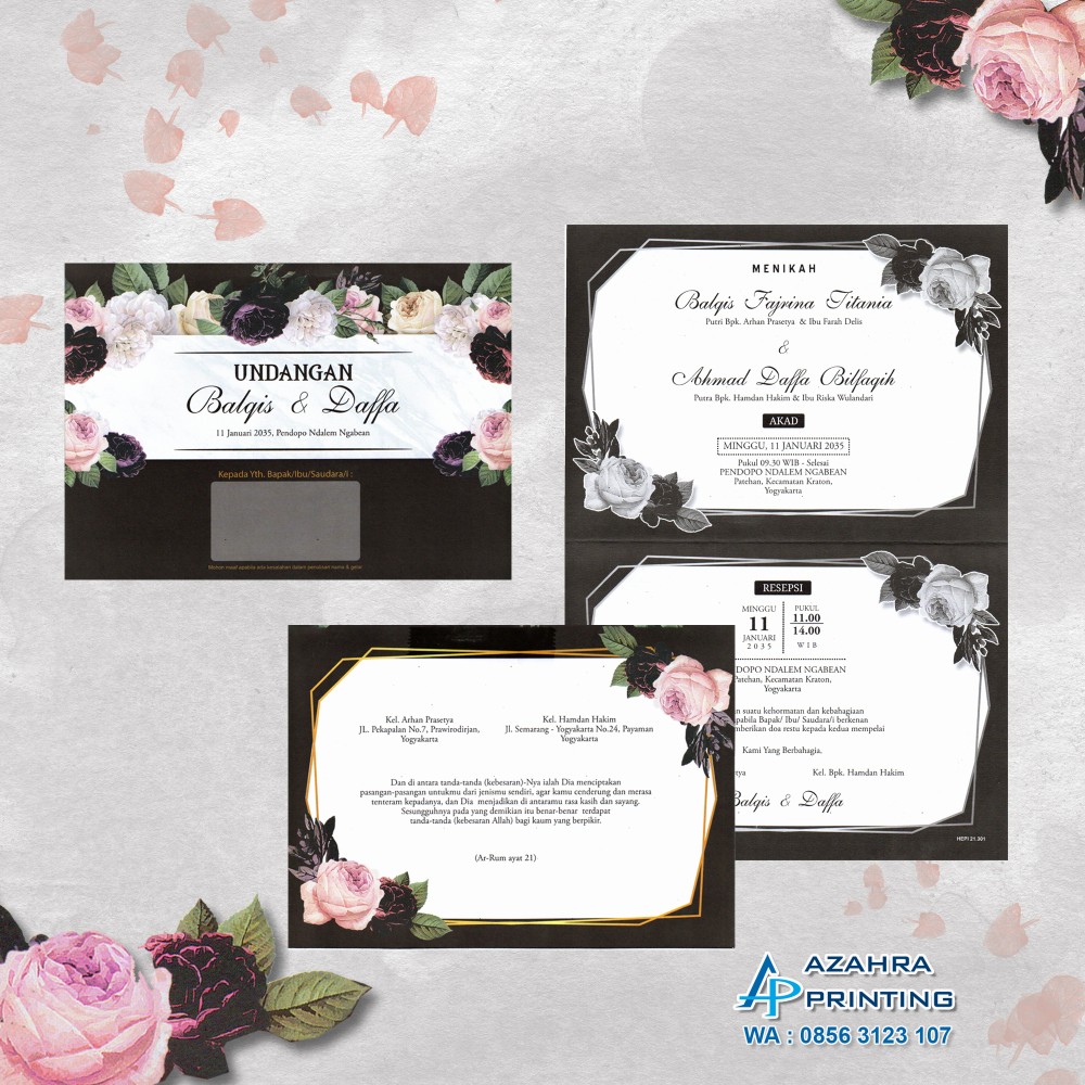 Keuntungan jika order di azahra_printing : ✨Pilihan undangannya banyak✨ Desain kekinian dan modis✨ Produknya berkualitas ✨ Packingnya aman✨ Pengirimannya cepat✨ Harga ramah dikantong ✨ Free revisi berkali-kali sampai fix✨ Free Foto (minimal order 300pcs) ✨ Free undangan website (minimal order 800pcs)✨ Free buku tamu (minimal order 300pcs)✨ Free cetak stiker label nama (minimal order 400pcs)✨ Undangan sudah terlipat rapi✨ Free denah lokasi dan barcode✨ Free Undangan Walimah 1 lembar HVS✨ Free plastik undangan ✨ Gratis Ongkir minimal order 800pcs se jatim