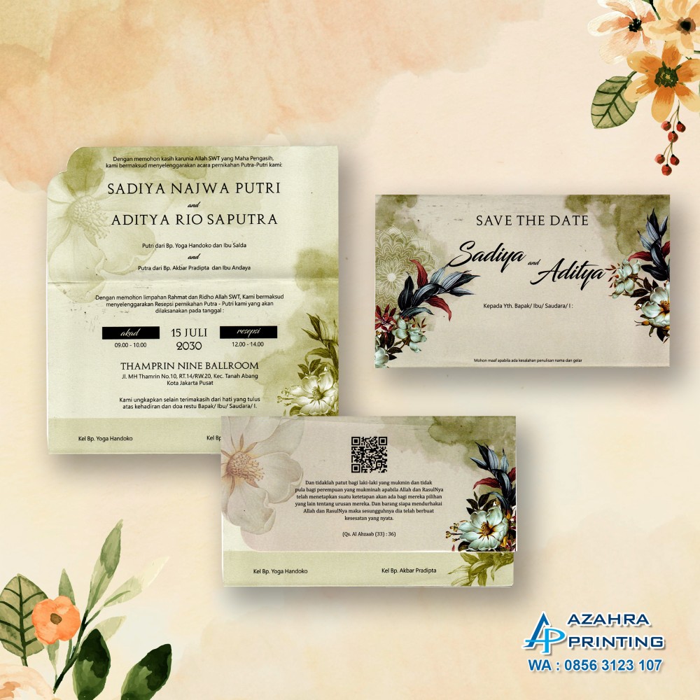 Keuntungan jika order di azahra_printing : ✨Pilihan undangannya banyak✨ Desain kekinian dan modis✨ Produknya berkualitas ✨ Packingnya aman✨ Pengirimannya cepat✨ Harga ramah dikantong ✨ Free revisi berkali-kali sampai fix✨ Free Foto (minimal order 300pcs) ✨ Free undangan website (minimal order 800pcs)✨ Free buku tamu (minimal order 300pcs)✨ Free cetak stiker label nama (minimal order 400pcs)✨ Undangan sudah terlipat rapi✨ Free denah lokasi dan barcode✨ Free Undangan Walimah 1 lembar HVS✨ Free plastik undangan ✨ Gratis Ongkir minimal order 800pcs se jatim