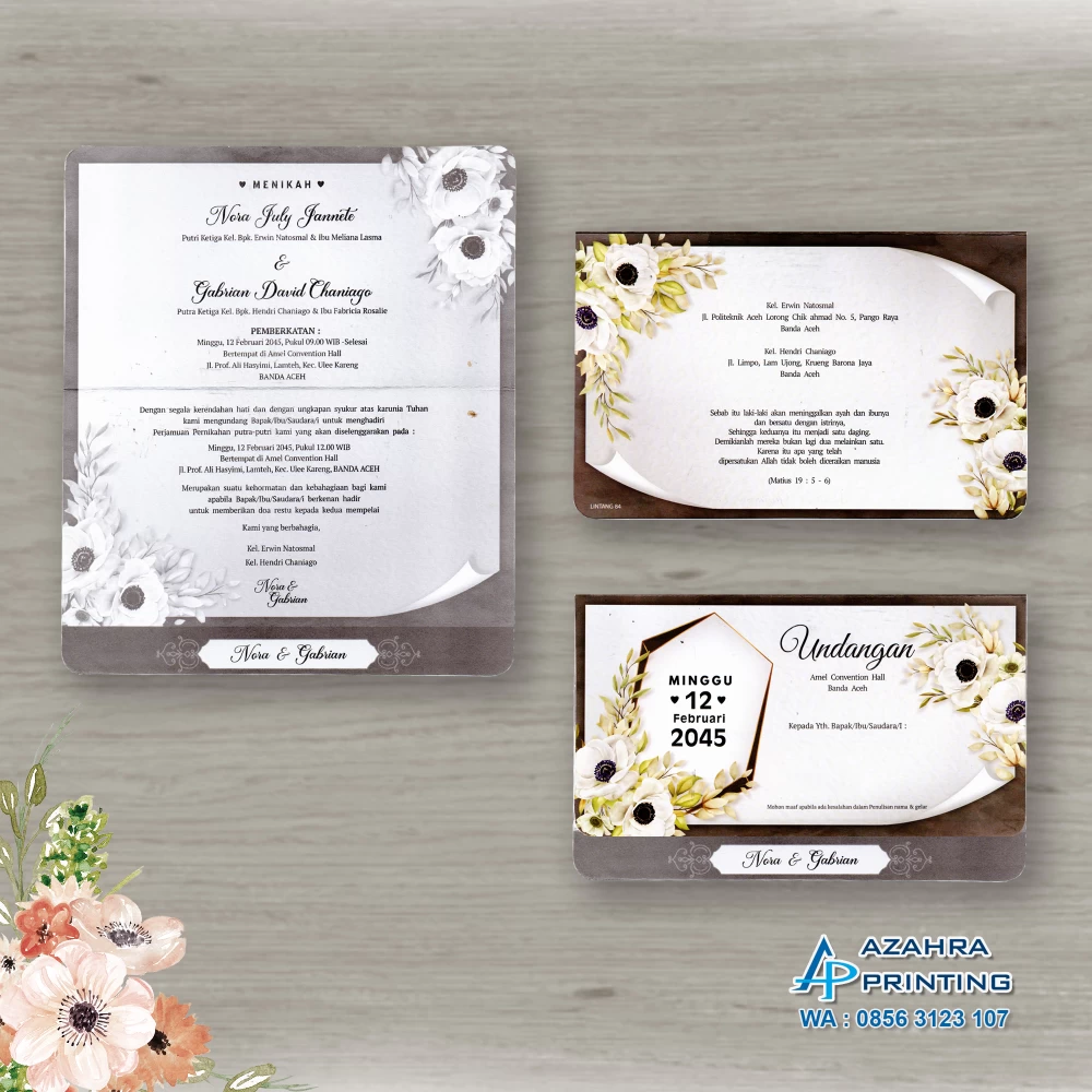 Keuntungan jika order di azahra_printing : ✨Pilihan undangannya banyak✨ Desain kekinian dan modis✨ Produknya berkualitas ✨ Packingnya aman✨ Pengirimannya cepat✨ Harga ramah dikantong ✨ Free revisi berkali-kali sampai fix✨ Free Foto (minimal order 300pcs) ✨ Free undangan website (minimal order 800pcs)✨ Free buku tamu (minimal order 300pcs)✨ Free cetak stiker label nama (minimal order 400pcs)✨ Undangan sudah terlipat rapi✨ Free denah lokasi dan barcode✨ Free Undangan Walimah 1 lembar HVS✨ Free plastik undangan ✨ Gratis Ongkir minimal order 800pcs se jatim