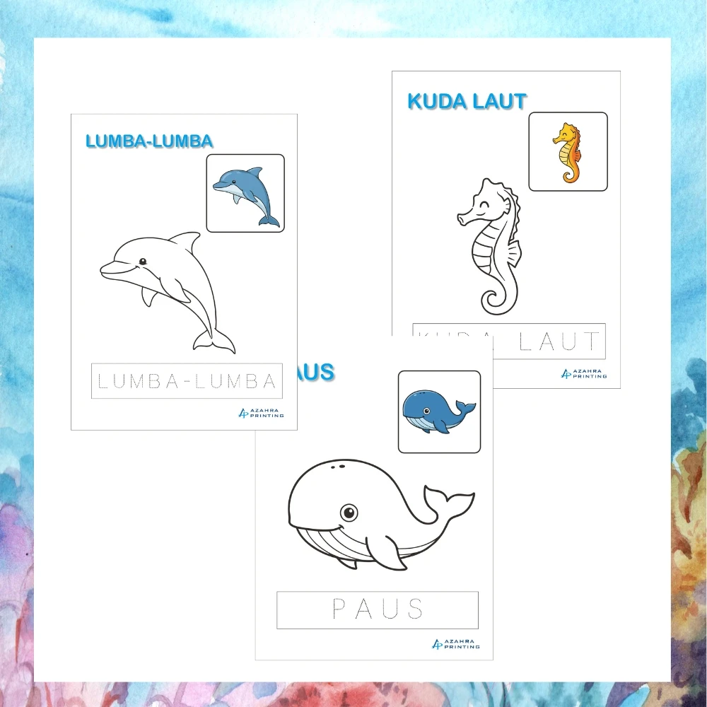 Lembar belajar mewarnai hewan laut isi 20 lembar
